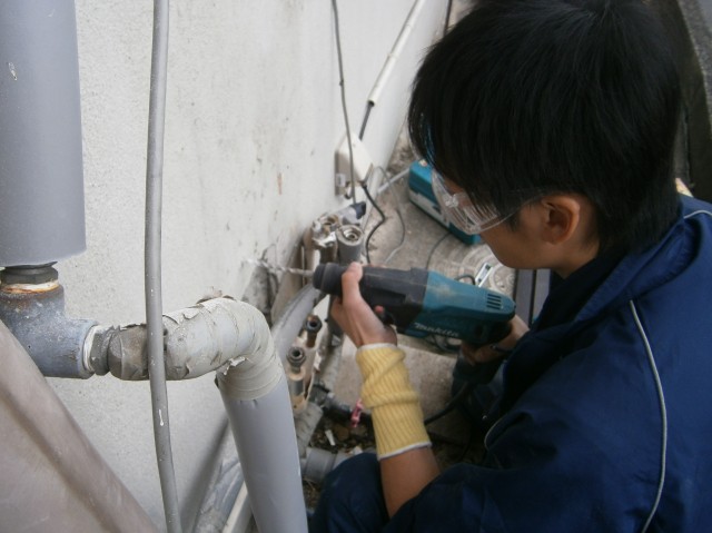 給湯器取替え工事 施工事例 名古屋市名東区 施工中