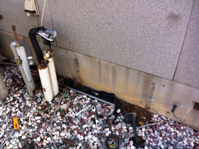 通水テスト中に銅管に穴が開いているのを発見!!
