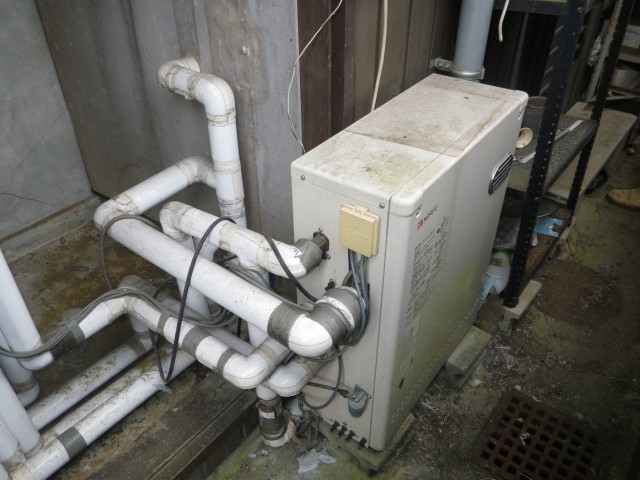 これは、既設の石油給湯器。。。本体から水漏れを起こしてます。