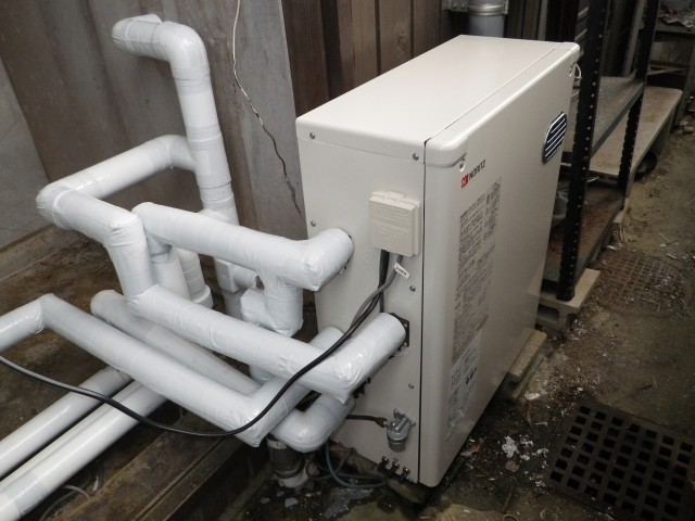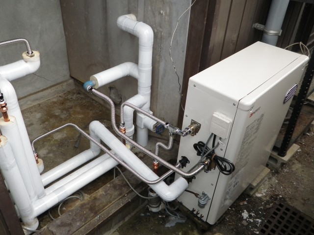 今回は石油給湯器の取替と洗濯機ユニットの撤去そして配管位置変更を行います。