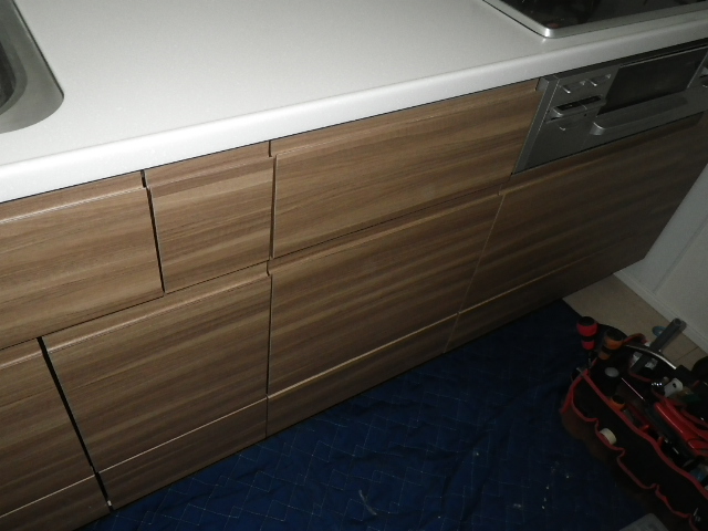 食洗機取替工事(神戸市垂水区)収納棚固定完了後