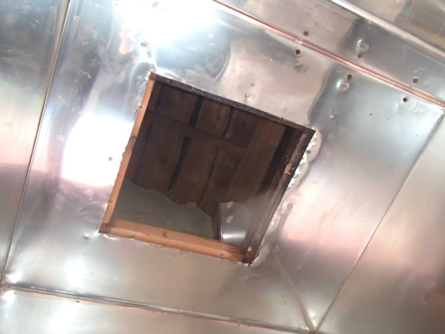 おっきぃステンのフードの中にこれまたおっきぃ埋め込み換気扇が住んでます。